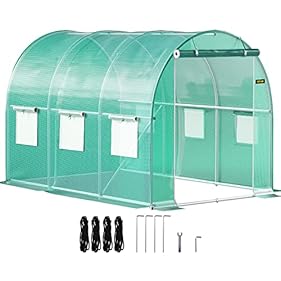 VEVOR Begehbares Tunnel-Gewächshaus, 3 x 2,1 x 2,1 m, tragbares Pflanzen-Heißhaus mit verzinkten Stahlrahmen, 1 Oberbalken, diagonale Stangen, Reißverschlusstür und 6 aufrollbaren Fenstern, grün