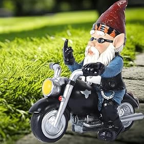 Gartenzwerg-Statue: Der motorrad zwerg ist aus hochwertigem Harzmaterial hergestellt, das Wind und Regen standhält und langlebig ist.das langlebig ist und eine lange Lebensdauer hat