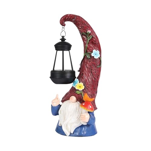 Solar Gartenzwerg Gartendeko Figuren – Lustig aus Kunstharz Zwerge Garten Deko Draußen Wetterfest mit LED Solarlaterne, Gartendeko Gartenleuchte für Außen Hof Balkon Terrasse