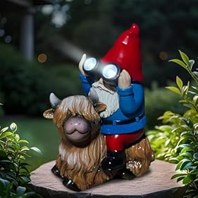 Solar-Hochlandkuh-Zwerg, Gartenstatue, Outdoor-Dekoration, lustige Solarlicht-Dekoration für Balkon, Garten, Terrasse, Hof, Rasen, Geburtstagsgeschenk für Frauen, Männer, Mutter, Oma