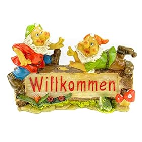 Welcome Gartenzwerg auf Holzstamm 26 cm Gnom Figur Gartenfigur Zwerg