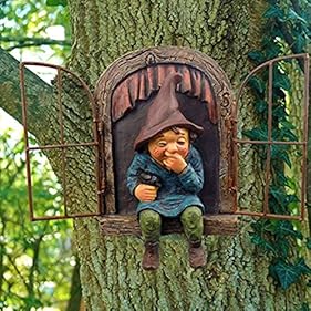 Elf Out The Door Tree Hugger, Gartenstatue Harz Zwerg Figur, Hängende Gartenzwerge Baum Dekoration für Terrasse Rasen Ornament (Frauen)