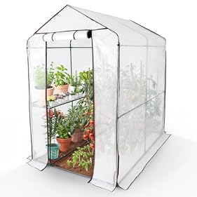 Verschiedene Verwendungszwecke – Das Gewächshaus ist ideal für den Anbau von Setzlingen, Tomaten, Gurken, Stecklingen und vielem mehr. Die 4 verstellbaren Regale passen sich den verschiedenen Größen verschiedener Pflanzen an, während die mitgelieferte Abdeckung ausreichend Schutz vor schlechtem Wetter bietet und einen guten Winterschutz gewährleistet.