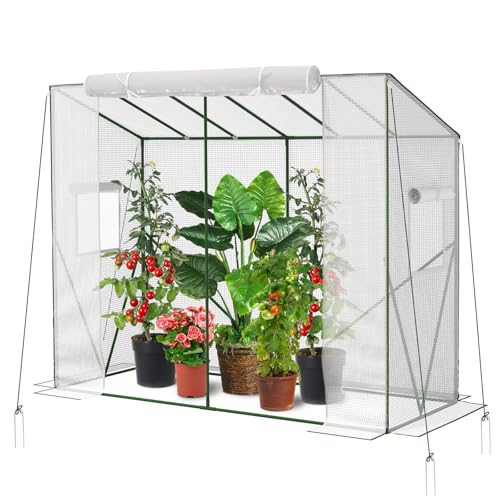 Velway Tomaten Gewächshaus Foliengewächshaus Stabil – 208x81x170/141cm Winterfest Tomatenhaus Schrägdach Garten Treibhaus mit PE Gitterfolie, Belüftungsfenster, Erdanker und Winddichten Seile – Weiß
