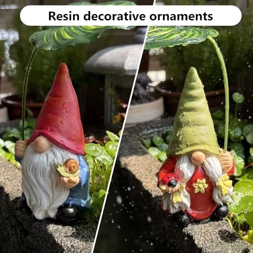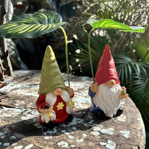 【Lebendiges Froschbild】Unsere Gartenzwerge für Außen zeigt einen Zwei Zwerge unter einem Zwei großen Blattschirm – lebendig, einzigartig und voller Frühlingsfreude. Ein Zwerg hält ein Blatt und eine Schnecke. Ein anderer Zwerg hält einen Marienkäfer und benutzt ein Blatt als Regenschirm. Eine sehr entspannende und angenehme Szene, die Spaß in Ihren Garten bringt.
