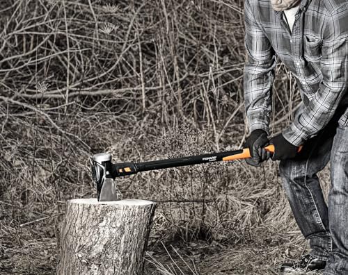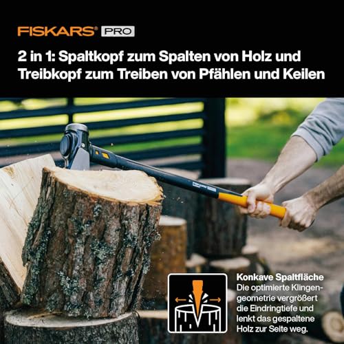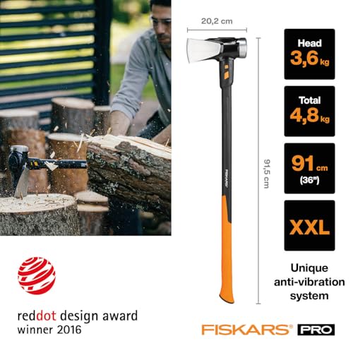 Lieferumfang: 1x Fiskars Spaltaxt IsoCore XXL, Länge: 92 cm, Gewicht: 5,22 kg, Material: Gehärteter Stahl/Glasfaserverstärkter Kunststoff, Farbe: Schwarz/Orange, 1020220