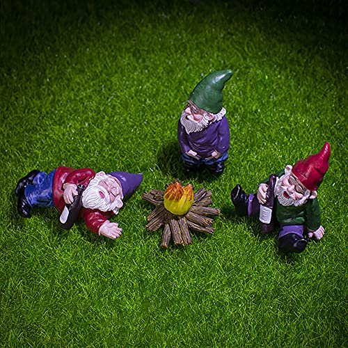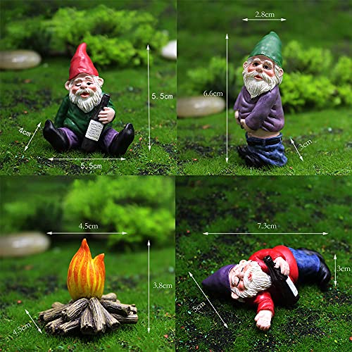 4PCS Miniatur-Garten-Harzzwerge Set, Mini-Zwergfigur Gartenzubehör Feengarten, Rasenverzierungen, Innen- oder Außendekorationen und Geschenk.