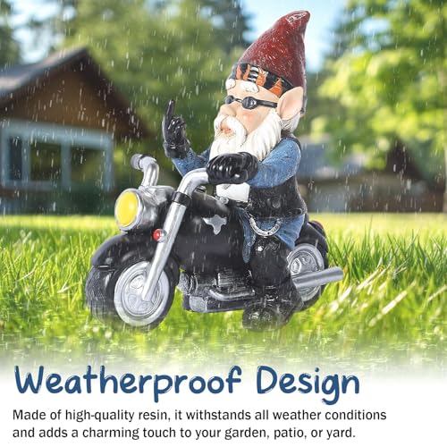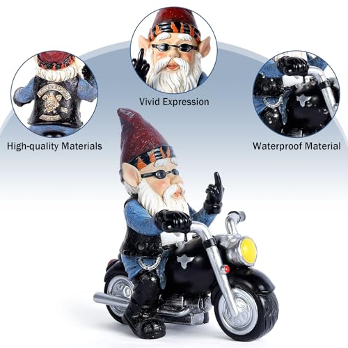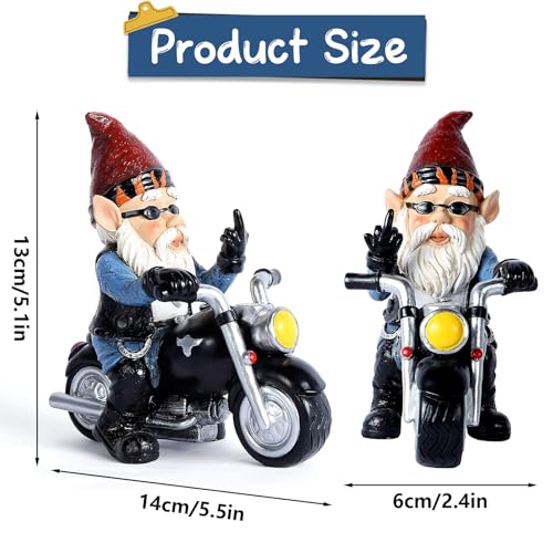 Gartenzwerg Motorrad Zwerge 13,3 x 13 cm Wasserdicht Gartenzwerge Statue Sonnenschutz Gartendeko für den Garten Wichtelgeschenke Lustige Statue Deko für den Terasse Balkon