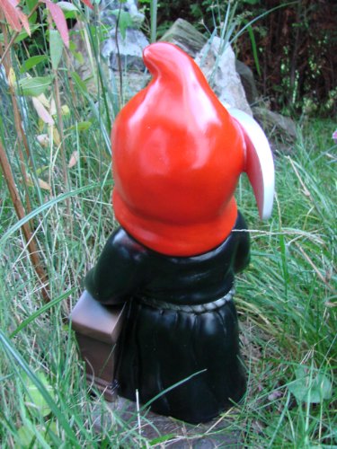 Dieser finstere Gartenzwerg besteht aus wetter und bruchfestem PVC.