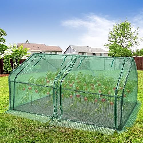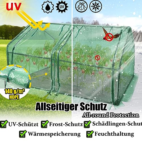 🌱Rollladentüren: Die Seite ist mit 2 Reißverschlussrollläden ausgestattet, die je nach Bedarf geöffnet oder geschlossen werden können und an der Oberseite befestigt werden können, um sie offen zu halten und den Luftstrom zu regulieren. In der Zwischenzeit können die Pflanzen ausreichend Licht und Wärme erhalten, perfekt für die Aussaat, das Wachstum und die Kultivierung, um Pflanzen wie Obst und Gemüse vor kaltem Wetter zu schützen.