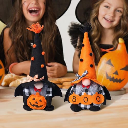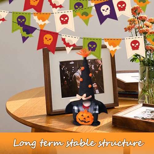 Saisonale Deko-Highlights: Durch die Verbindung von Halloween- und Weihnachtsmotiven heben diese Gnome Fledermäuse, Kürbisse und verspielte Fantasie-Elemente hervor. Ideal für festliche Stimmung zu Hause.