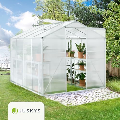 ✔ Reichlich Platz: 190 × 253 cm großes Aluminium Gewächshaus mit Fundament und Dachfenster für die Aufzucht von Obst, Gemüse und Pflanzen. Ideal, um Tomaten, Gurken, Kräuter und anderes Gemüse wachsen zu lassen.