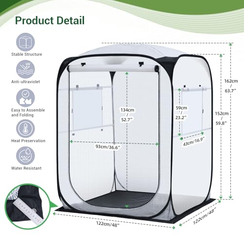 Geräumiges Design für vielseitigen Einsatz: Das Ohuhu Pop-up-Gewächshaus misst 122 x 122 x 162 cm und wiegt nur 4,8 kg, wodurch es ideal für große Pflanzen und Blumentöpfe ist. Zusammengeklappt schrumpft es auf 60 x 60 x 8 cm, wodurch es leicht zu verstauen und zu transportieren ist und in einer Vielzahl von Innen- und Außenszenarien verwendet werden kann