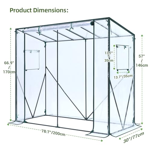 Ohuhu Tomaten Gewächshaus Foliengewächshaus mit PVC-Abdeckung und Fernster, Begehbarer Gewächshaus 200x77x170 cm Gewächshaus Klein Winterfest Tomatenhaus für Optimales Pflanzenwachstum