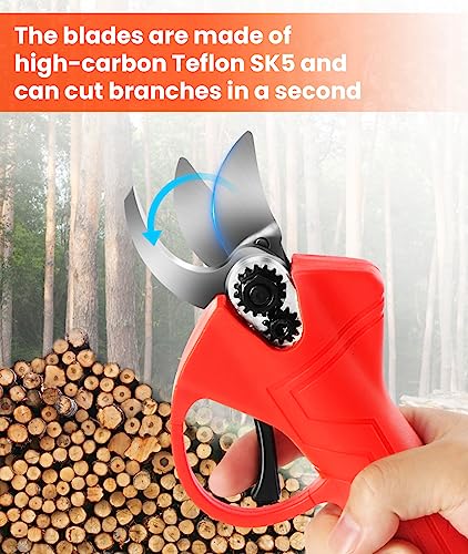 【Effizientes Schneiden und starke Leistung】Unsere professionelle elektrische Akku-Gartenschere mit 2-teiligen Klingen, die aus SK5-Kohlenstoffstahl geschmiedet sind, ist extrem scharf und langlebig. Sie kann harte Äste bis zu 30 mm in einer Sekunde mit schnellem, sauberem und flachem Schnitt abschneiden, ohne die Äste zu beschädigen, was gut für die Baumgesundheit ist.