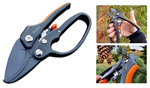 Diese praktische und professionelle Gartenschere aus japanischem SK5 Stahl mit Getriebe ideal für den Einsatz in Vor-, Baum- und Hausgärten, so dass junge Triebe, Reben, Blumen(inkl.Rosen) und frisches Holz geschnitten werden können,