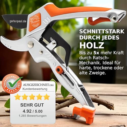 ✅ PROFIQUALITÄT: Hochwertige Materialien, clevere Technik und durchdachtes Design machen die Gartenpaul Ratsche 2.0 zum unverzichtbaren Gartenwerkzeug. Robust, langlebig und kraftsparend, für präzise Schnitte bei jeder Gartenarbeit.