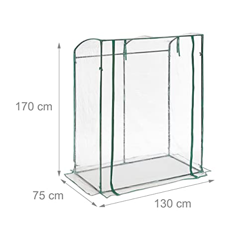 Relaxdays Tomatengewächshaus, PVC-Folie, HBT: 170 x 130 x 75 cm, begehbares Foliengewächshaus mit Tür, transparent/grün