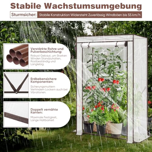 𝐈𝐝𝐞𝐚𝐥𝐞 𝐁𝐞𝐝𝐢𝐧𝐠𝐮𝐧𝐠𝐞𝐧 𝐟ü𝐫 𝐠𝐞𝐬𝐮𝐧𝐝𝐞𝐬 𝐏𝐟𝐥𝐚𝐧𝐳𝐞𝐧𝐰𝐚𝐜𝐡𝐬𝐭𝐮𝐦: Das Sekey Mini Gewächshaus bietet Ihren Tomaten, Paprika, Salat, Chilischoten, Auberginen und Melonen ein wahres Paradies zum Gedeihen. Mit 150CM Höhe und zuverlässigem Schutz vor Insekten und Kleintieren können Sie üppige Ernten erwarten.