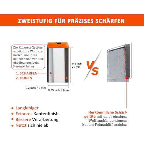 Das SHARPAL 129N Axtschleifwerkzeug ist mit langlebigen Hartmetallklingen ausgestattet, die eine schnelle Erzeugung von Schneiden mit starker Schleifkraft ermöglichen. Dies stellt sicher, dass Ihre Schneidwerkzeuge immer in Bestform sind, bereit für jede Aufgabe, die auf Sie zukommt.