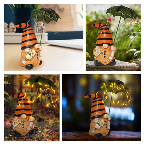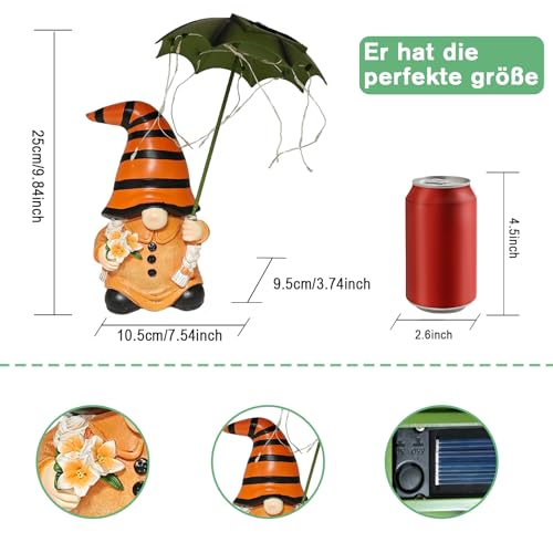 【Einzigartiges und Natürliches Design】Diese 25 cm große Gartenzwerg-Figur hält einen Strauß Blumen und ein Regenschirm mit integrierter Solarlampe, die Ihrem Außenbereich eine natürliche und dauerhafte visuelle Freude und einen Hauch von Magie verleihen.