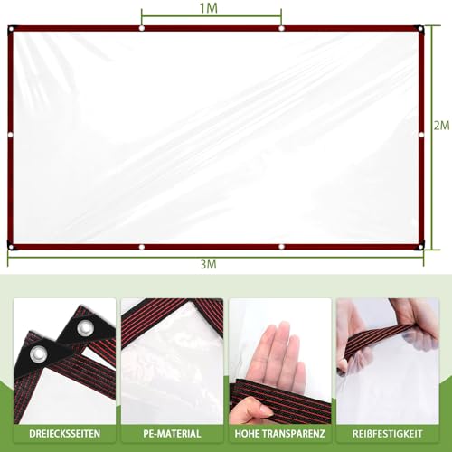 【Outdoor-Plane】Transparente plane ist ein material mit wasserdichten eigenschaften. Transparente abdeckplane kann man verhindern, dass regenwasser in outdoor-geräte oder persönliche gegenstände eindringt.bietet umfassenden schutz vor regen, schnee und wind, und die transparenz sorgt dafür, du ich immer sehen kann, was darunter geschützt wird.