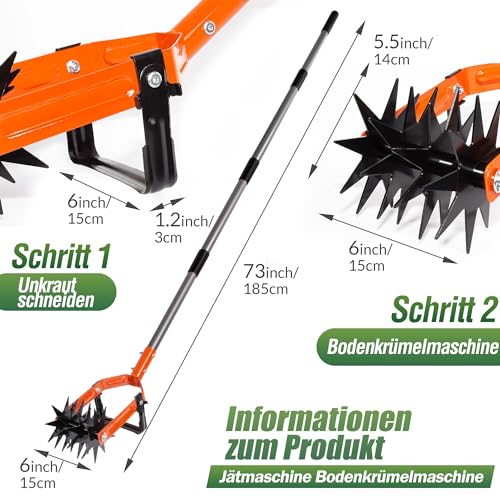 【Einstellbare Länge & Hohe Qualität】: Mit dem verstellbaren Griff können Sie seine Länge nach Ihren Bedürfnissen anpassen. Der Griff ist aus Gummi und ergonomisch gestaltet, um die Belastung der Hände bei längerem Gebrauch zu verringern. Der große, stabile Griff sorgt für Komfort, so dass Sie längere Zeit ohne Beschwerden an der Auflockerung des Bodens arbeiten können. Der Stiel aus robustem Edelstahl ist korrosions- und rostbeständig. Die Kunststoffhülse erhöht zusätzlich die Robustheit.