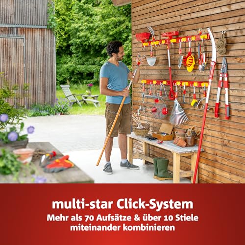 multi-star – das geniale Click-System: Mit nur einem Click lassen sich mehr als 70 Aufsätze für so ziemlich alle Arbeiten rund um den Garten mit einem der über 10 Stiele kombinieren.