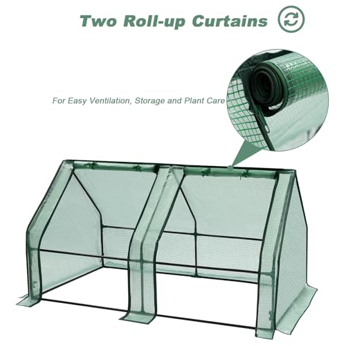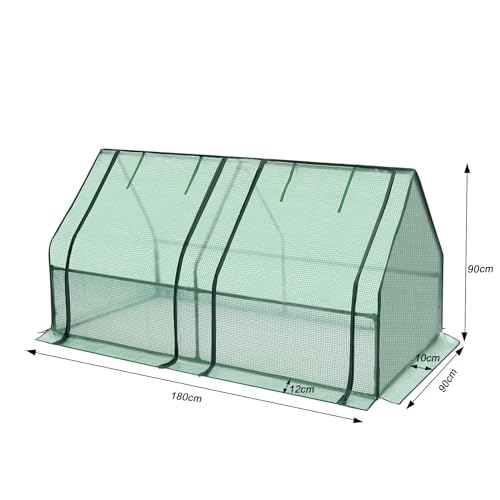 WOLTU Foliengewächshaus Frühbeet, Gewächshaus Balkon, Tomatengewächshaus, mit aufrollbaren Türen, 4 Heringe, 140 g/m2 PE, Metallrahmen, 180x90x90cm, Grün