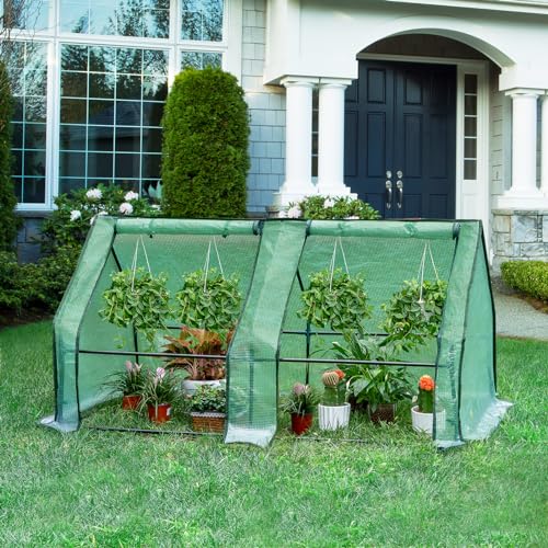 FLEXIBLE TEMPERATURREGELUNG: Die doppelt gewölbten Reißverschlussfenster vom Tomatengewächshaus bieten eine Öffnungsfläche von 0,24 m² pro Seite und erhöhen die Belüftungseffizienz um 30%. Zusätzlich kann optional ein Netz angebracht werden, um eine gute Belüftung zu ermöglichen– ideal für Tomaten, Paprika und andere hochwachsende Pflanzen