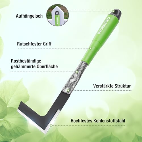 [Vielseitiges Gartengeräte Set] Das WORKPRO 6-teilige Gartenwerkzeug Set enthält alles, was Sie für eine effiziente Gartenarbeit benötigen: Jäter, 9-Zinken-Rechen, 2-in-1 Hacke, Kelle, Dreizinkiger Rechen und Fünfzinkiger Rechen. Ideal für Graben, Jäten, Lockern des Bodens und mehr